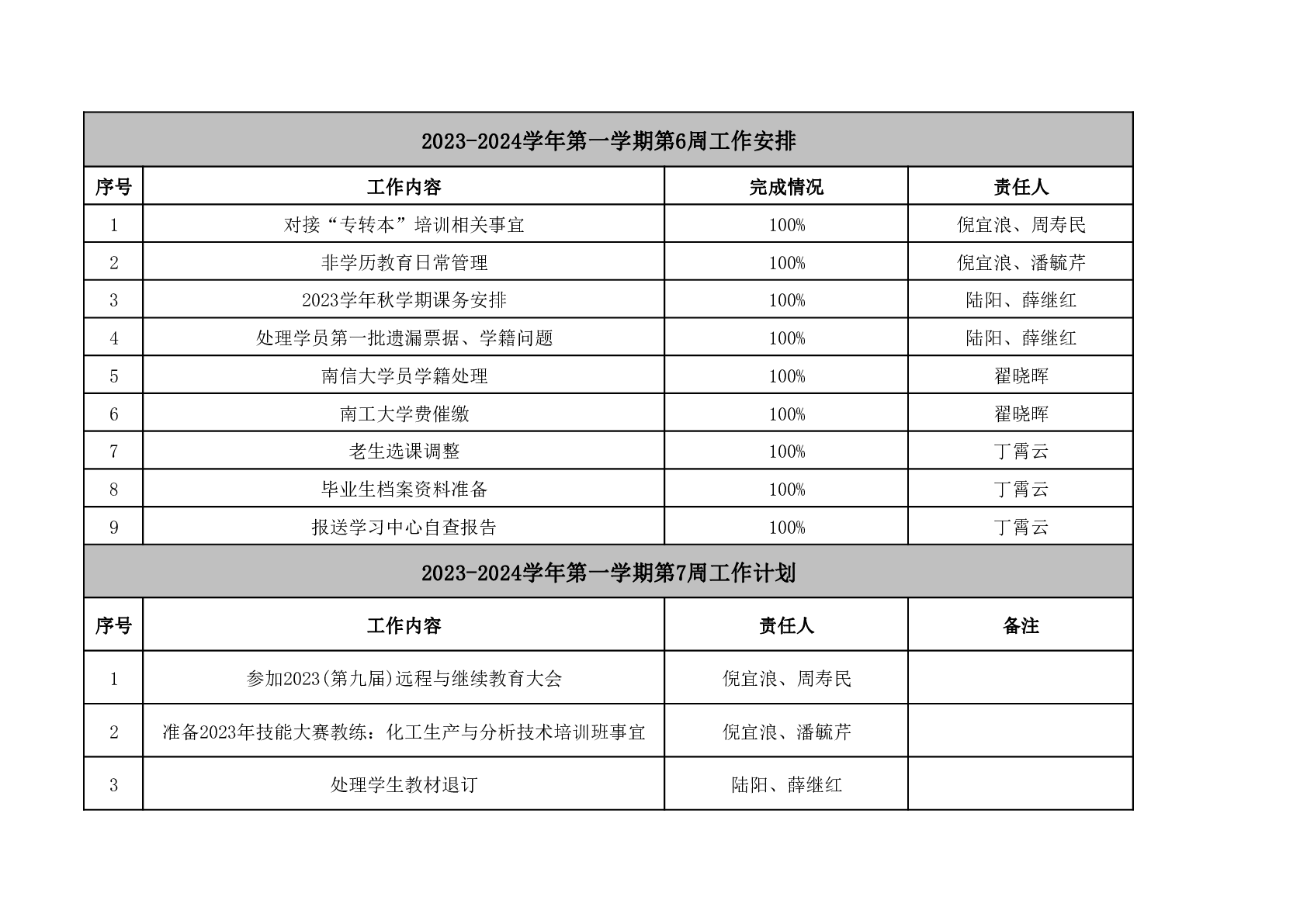 2023-2024学年第一学期第7周工作安排