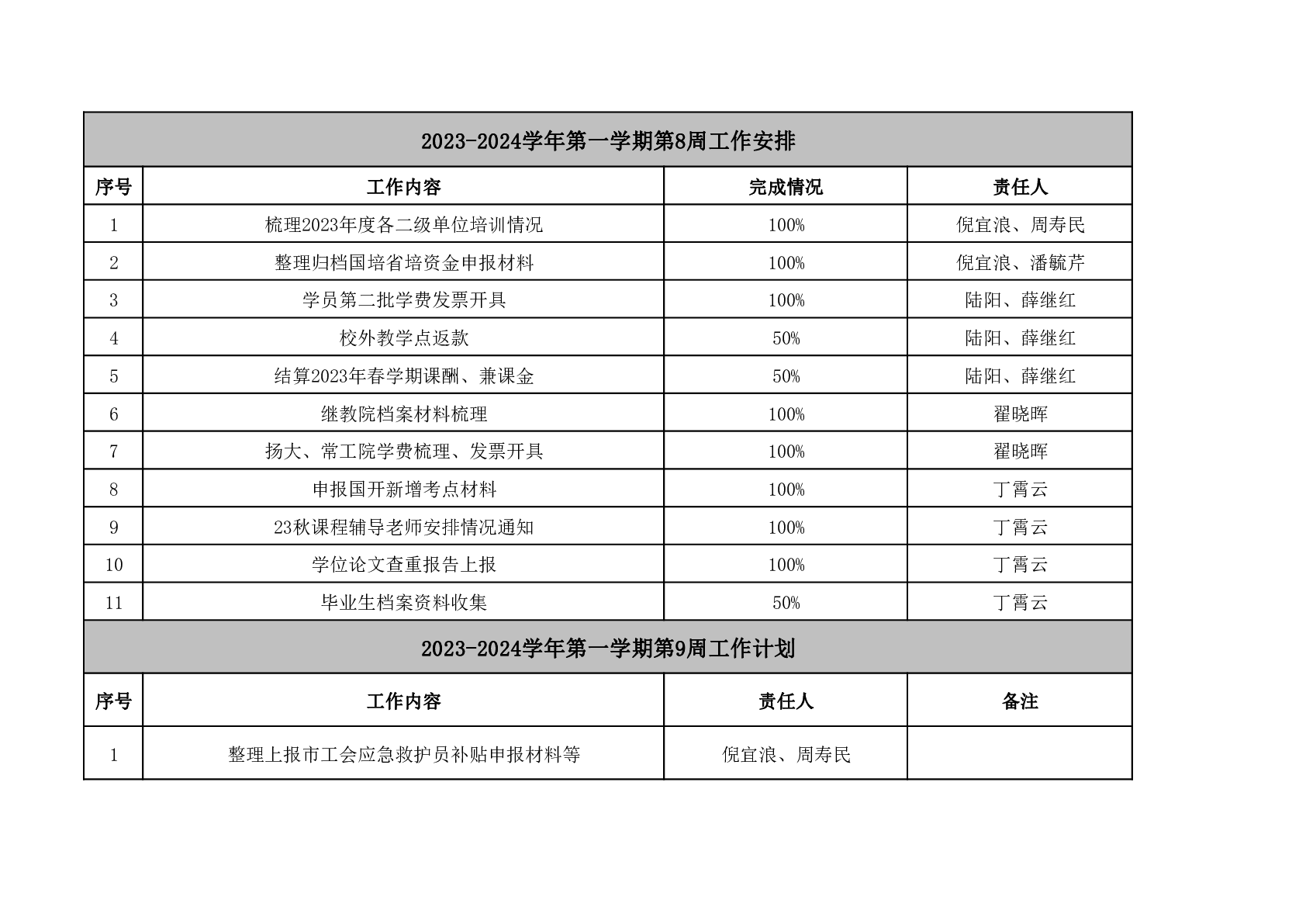 2023-2024学年第一学期第9周工作