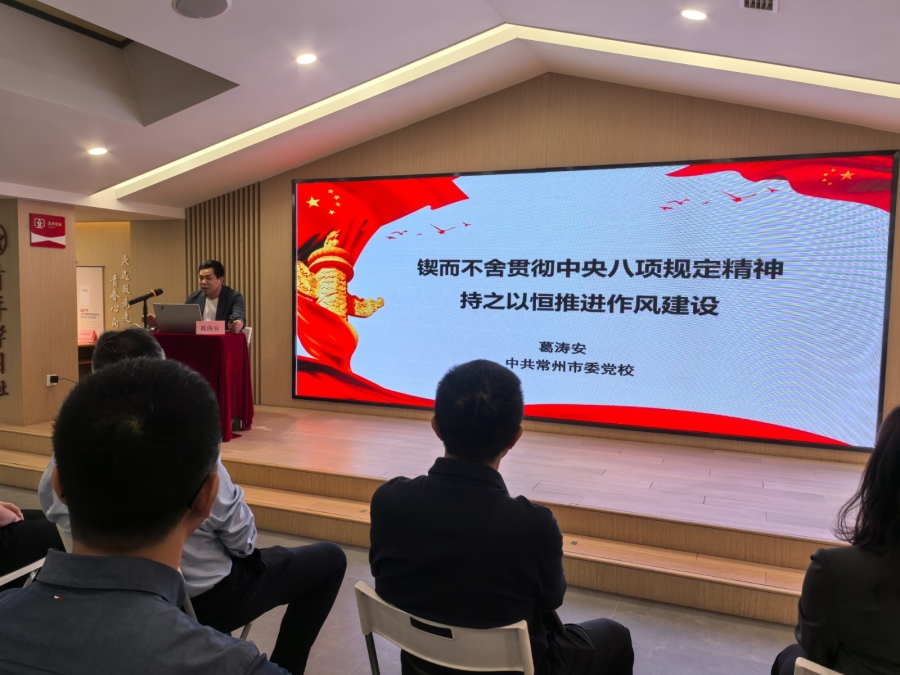参观结束后,全体党员聆听了中共常州市委党校葛涛安教授“锲而不舍贯彻中央八项规定精神,持之以恒推进作风建设”专题党课。葛教授从中央八项规定精神的出台背景、重要意义以及在新时代的贯彻落实等方面进行了深入浅出的讲解,结合实际案例,强调了加强作风建设的重要性和紧迫性。他指出,党员干部要以太雷同志为榜样,继承和发扬党的优良传统,始终保持清正廉洁的政治本色,以钉钉子精神贯彻中央八项规定精神,持之以恒推进作风建设,为实现高质量发展提供坚强保障。
